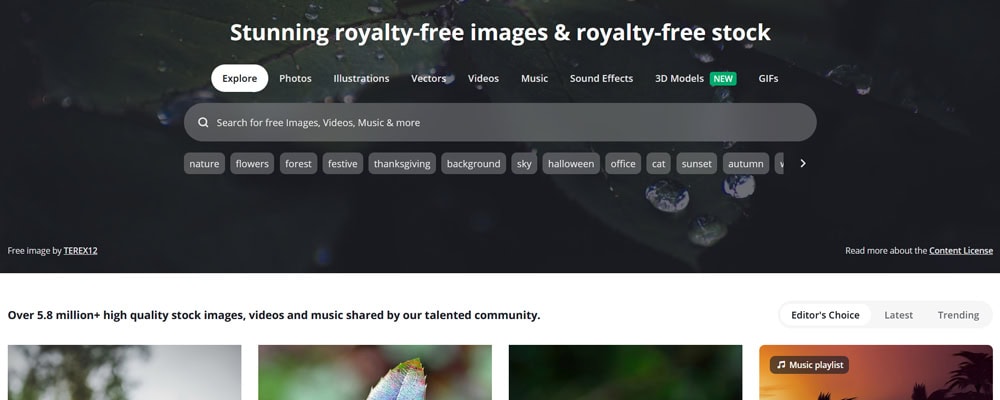 Best known for its premium content, but the free tier is still packed with photos, illustrations, icons, vectors, and layered PSDs. Many assets require attribution, so you need to double check licensing before downloading, yet the creative range makes it worthwhile. It is especially useful if you are after graphics rather than pure photography.