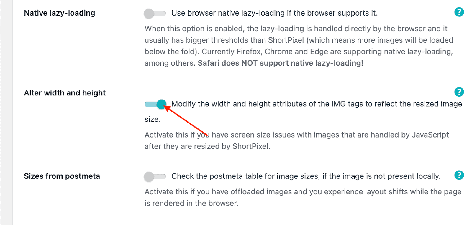 After enabling Alter width and height, many WordPress sites see:
