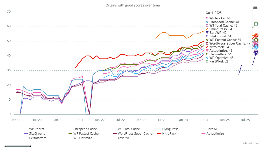 According to HTTP Archive’s report, websites using FastPixel show the best speed and Core Web Vitals performance.