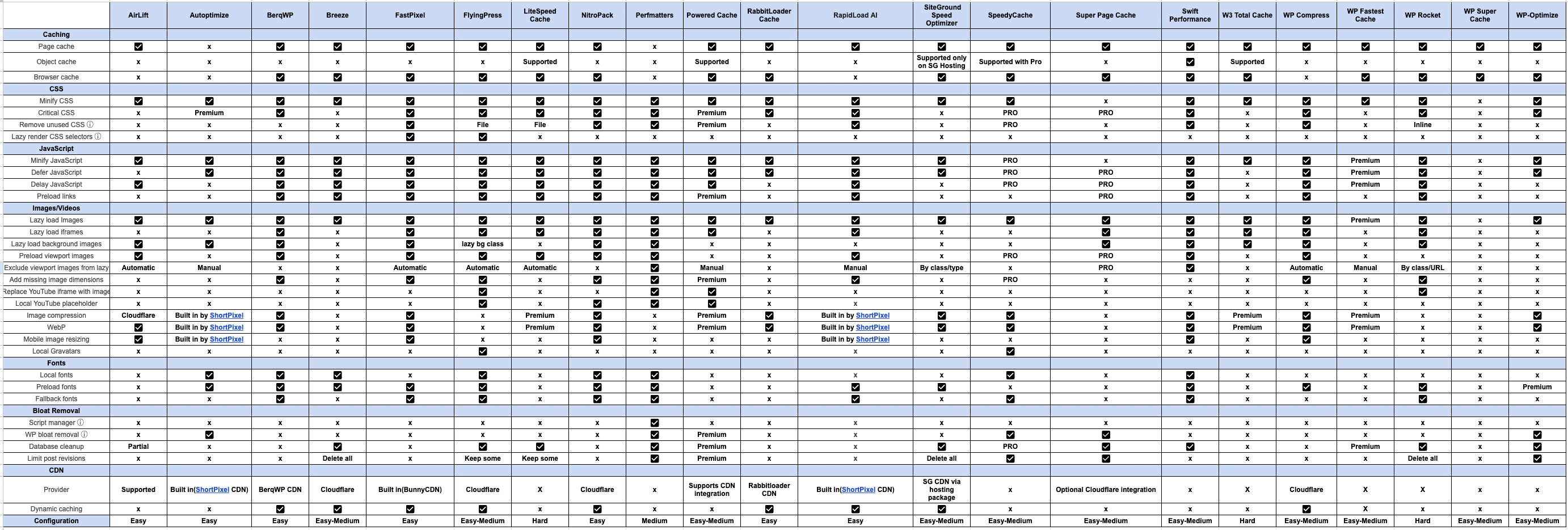 We’ve analyzed 22 popular WordPress caching and performance optimization plugins to help you understand what features are available across the market. This comparison covers everything from basic caching mechanisms to advanced optimization techniques.